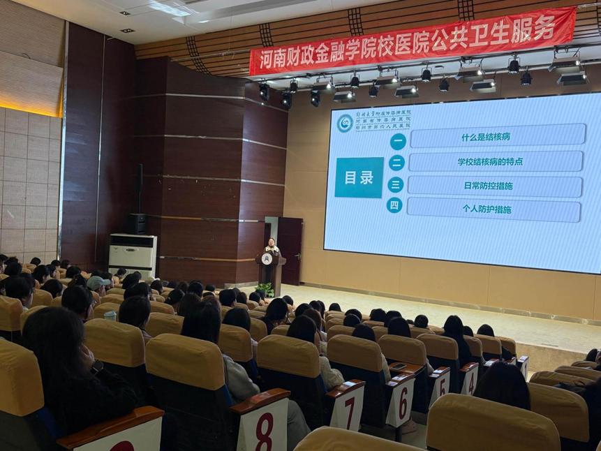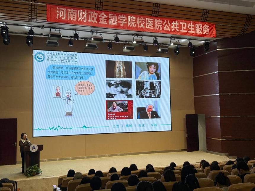 为进一步加强校园传染病预防与控制工作,提高全体师生的传染病防控意识和自我保护能力,营造健康安全的校园环境,10月28日校医院联合会计学院邀请郑州市第六人民医院感染科杜新爱医师及吕媛媛医师,在弘毅楼一楼报告厅为我院2025级新生举办了一场以“结核病、流感防控知识宣教”为主题的公益性讲座。