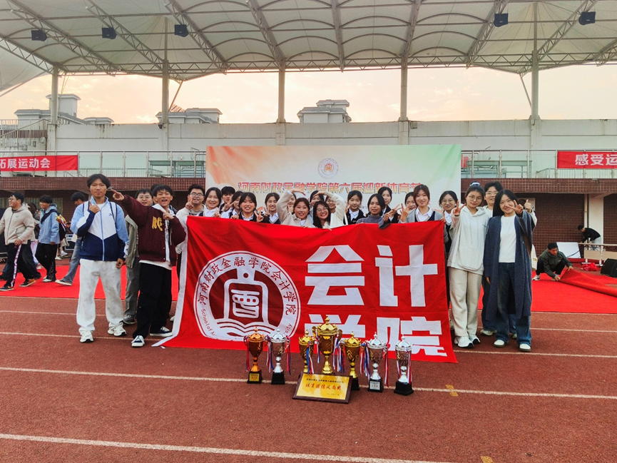 金秋送爽,丹桂飘香;运动赛场,激情飞扬。近日,河南财政金融学院第六届迎新体育节在龙子湖校区体育场圆满落下帷幕。会计学院学子凭借顽强的拼搏精神、默契的团队协作与出色的竞技水平,在众多参赛队伍中脱颖而出,不仅荣膺全校团体总分第一名的最高荣誉,更在定向越野、啦啦操排舞、乒乓球等多个单项赛事中斩获一、二、三等奖,用汗水与实力书写了会计学子的青春华章。