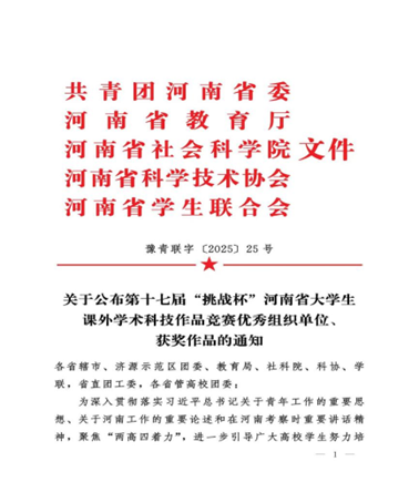 近日,第十七届“挑战杯”河南省大学生课外学术科技作品竞赛结果公布,会计学院参赛团队表现突出,斩获特等奖2项、一等奖1项、三等奖2项,充分展现了我院在实践育人和创新人才培养方面的成效。
