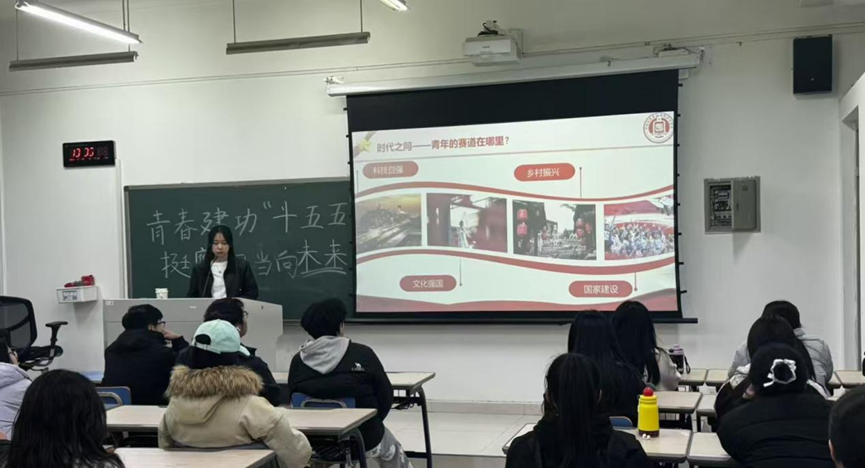 团课内容紧密围绕党的二十届四中全会精神。各团支部委员分别从“时代坐标”“青年赛道”“行动指南”三个维度进行讲解,引导青年认识到自身不仅是国家发展的见证者与受益者,更应成为未来的建设者与贡献者。在“青年赛道”解读环节,各团支部围绕科技创新、产业升级、绿色发展等国家战略方向,结合当前政策与青年成长机遇展开解读,帮助同学们立足自身专业,更清晰地规划未来发展路径。