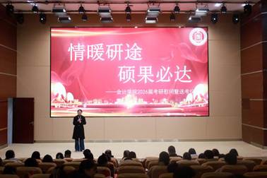 12月10日,我院在弘毅楼报告厅举行2025年研究生招生考试考前慰问活动,为考研学子加油鼓劲。学院党总支书记胡红军,副书记范磊,副院长库向芳、金颖颖,团总支负责人、毕业班辅导员及考研学生等参加活动。